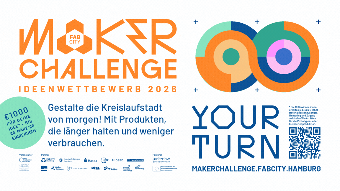 Mit der MAKER CHALLENGE 2026 startet in Hamburg erneut ein offener Ideenwettbewerb für Produkte, „die länger halten und weniger verbrauchen”. Gesucht werden Produktideen mit zirkulärem Potenzial – langlebig, reparierbar, modular, recyclingfähig oder besonders ressourcenschonend. Ziel ist es, gemeinsam Momentum für die Kreislaufstadt von morgen aufzubauen.